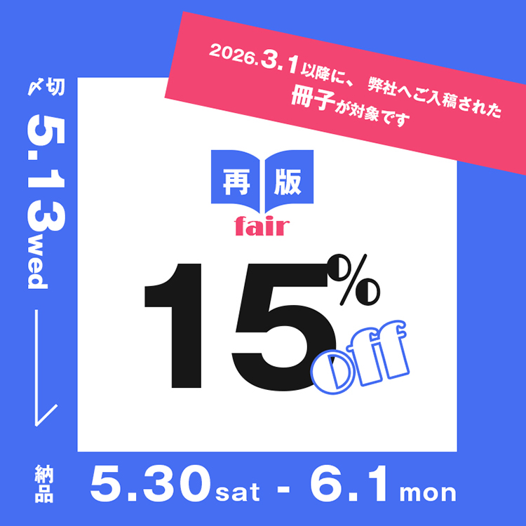 対象の期間にご入稿いただいた冊子の再販が、セット料金15%OFFでご利用いただけます!
